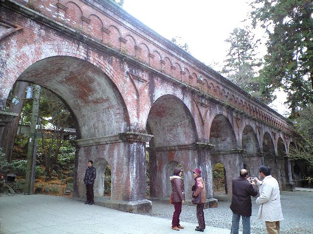 次に行った南禅寺は、天竜寺同様、庭園の綺麗な所。あと、赤レンガのアーチがあって、これは明治時代に琵琶湖から水を引いた水路閣だったそうです。